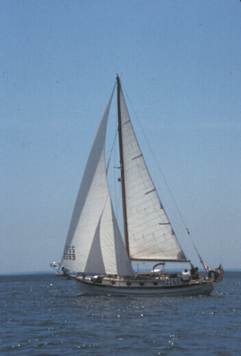 The final sail into New York.  Just Ό mile from dropping the hook off Sandy Hook with our dead engine, when the changed weather report for continued wind comes over the radio and you decide to go for it.  What a magical trip.  Other people went to sleep, but I had to stay up for this.  I knew that never again would I get a chance to sail a 52' boat through New York in the wee hours of the morning with no engine, and I wasn't going to miss a minute of it.  If we'd planned it for years it couldn't have been better timed.  Plenty of wind when we needed to run through the Verrazano Narrows against the outgoing tide.  Then both tide and wind drop and we ghost up the East River, living from puff to puff, riding the slowly turning tide.  Arriving at Hell's Gate at slack.  Towboats with barges coming up behind and just about to head into HG from the other direction - so we get on channel 13, plead sudden engine failure, and they both hold back while we sail through.  Under the Throgs Neck and Whitestone as dawn breaks.  Getting ready to put the dinghy in to tow us the rest of the way, when the wind comes back up.  Me on the helm, Jim on one jib sheet, Frank on the other, Steve hanging over the bow calling out the commands as we throw rapid tack after tack up the narrow channel toward the dock, a seasoned crew bringing the boat to 100 yards from home.  Magic.
